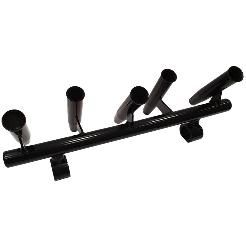 The Galaxy 5 fishing rod holder / bracket is ideal for securing 5 fishing rods, keeping them safe and stored off the deck floor. It's easily fitted to your T-top unit with easy mounts to any 1.5 to 2-inch diameter tube. It's made from high-grade aluminium with a black powder-coated finish to give an all weather / water protection. It installs in minutes by simply placing the two halves of the clamp around the pipe, inserting the bolts and tightening.